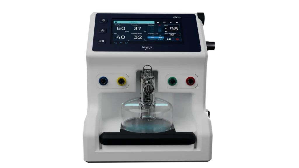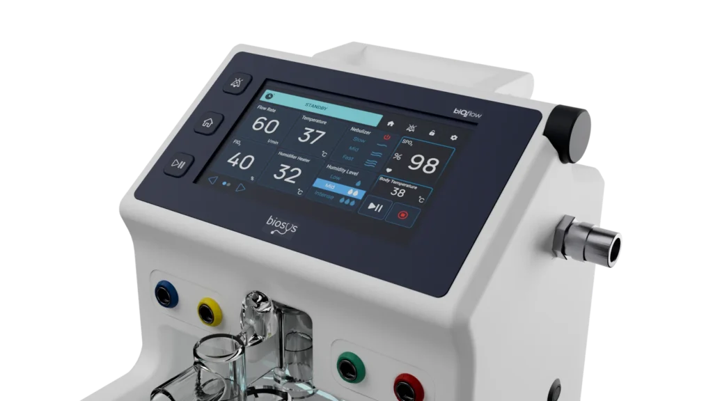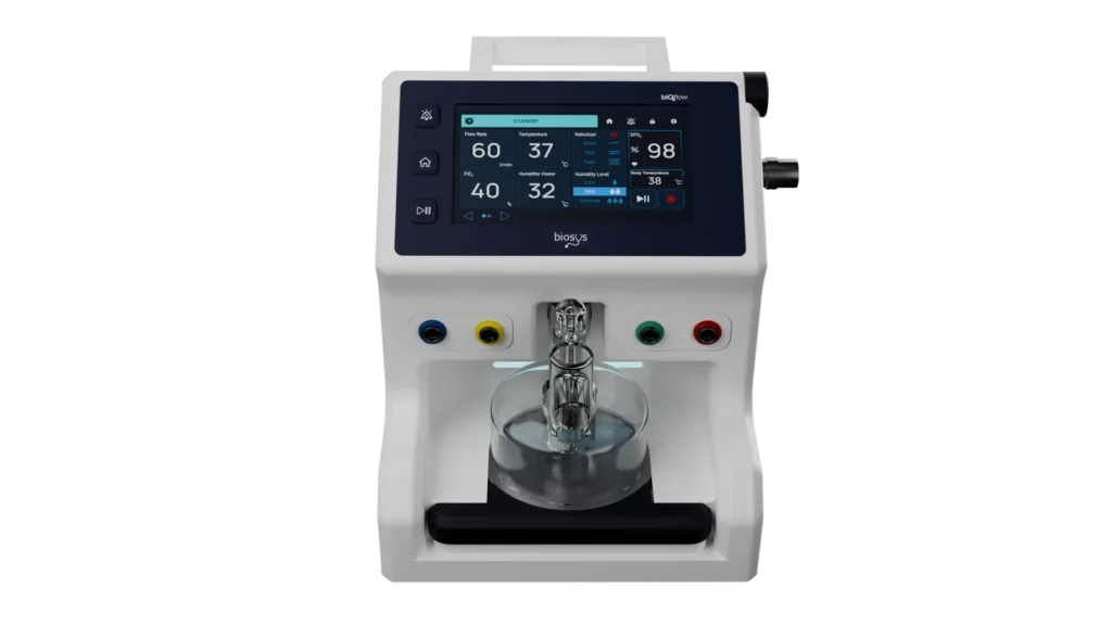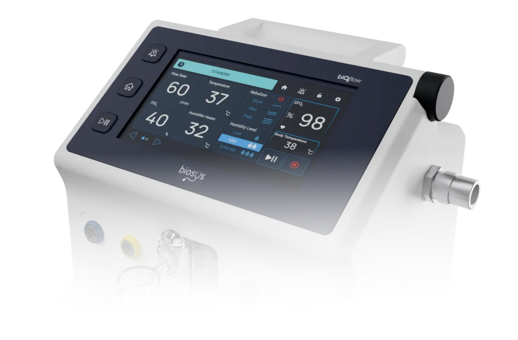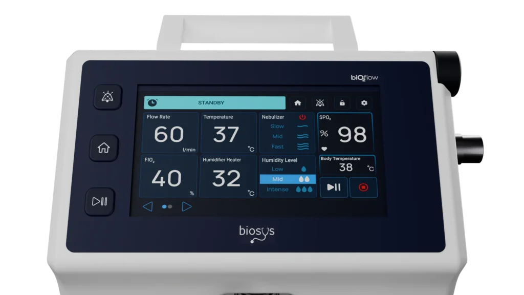 Bio2Flow, entegre nemlendirici, batarya ve nebulizatör özellikleriyle yüksek akımlı oksijen tedavisini yeniden tanımlayarak hastanelerde yoğun bakım seviyesinde bakım sunar. Entübasyon ve yoğun bakım ihtiyacını azaltarak solunum sorunları yaşayan hastalara güvenli, konforlu ve etkili bir tedavi imkânı sağlar.